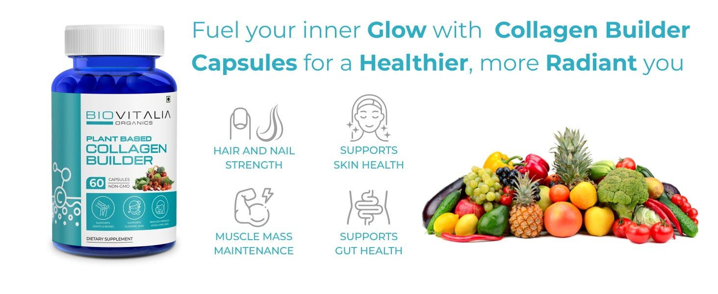 ✅ WHY IS IT ESSENTIAL? A decline in collagen protein levels can lead to weakened bones, fragile nails, brittle hair, and parched skin. Biovitalia’s plant-based collagen capsule are your supporter in revitalizing your skin, hair, nails, bones, tendons, joints, and gut health.